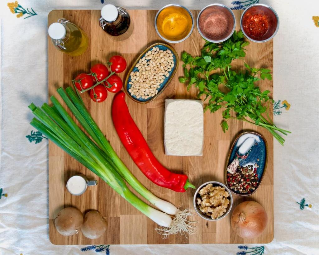 - Then, chop the herbs and dice the veggies into small pieces or to your liking.